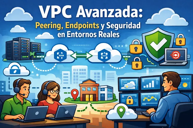 Cuando un proyecto crece, una VPC deja de ser suficiente. Aprende a diseñar arquitecturas de red escalables con peering, transit gateway, endpoints privados y seguridad por diseño.